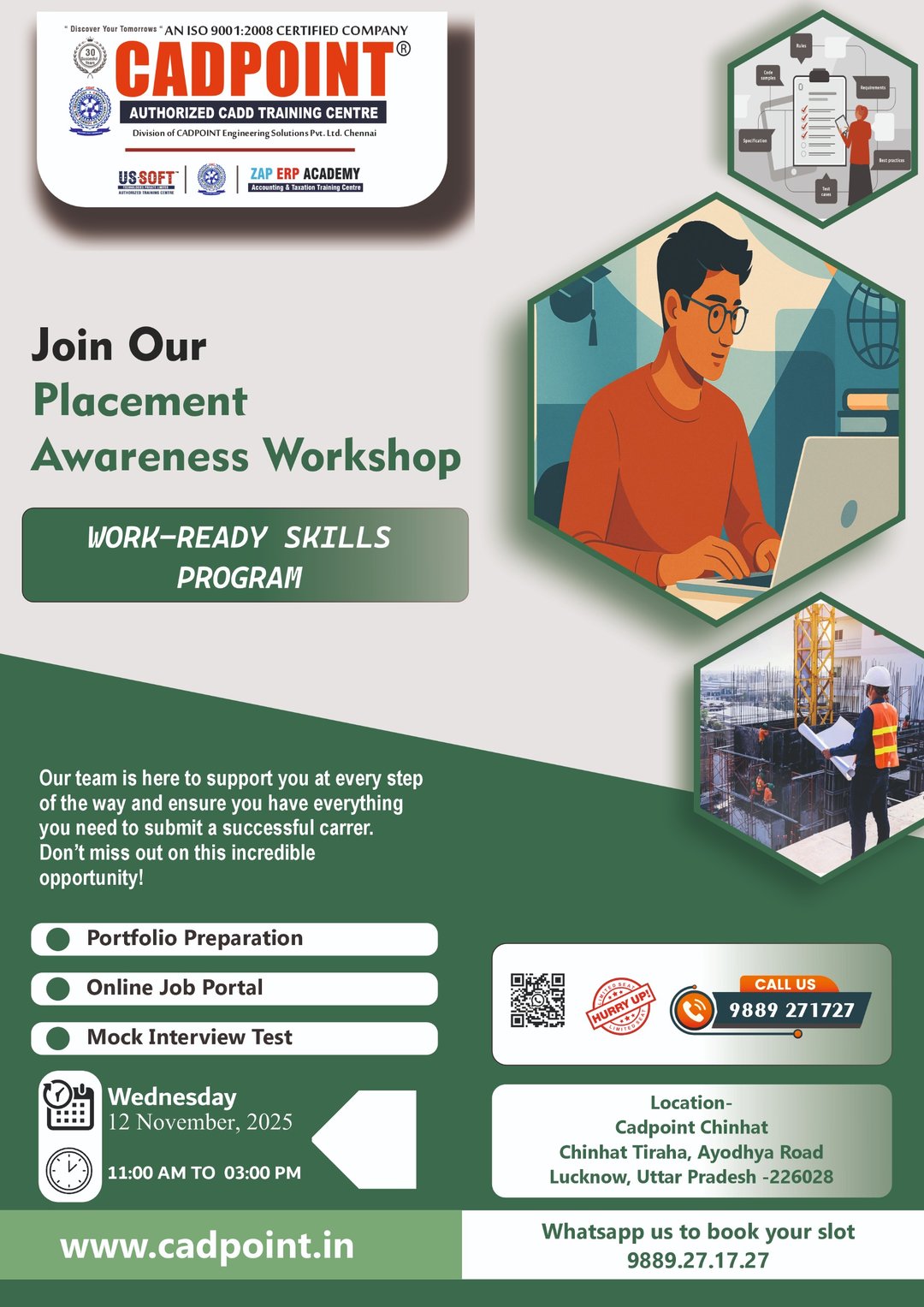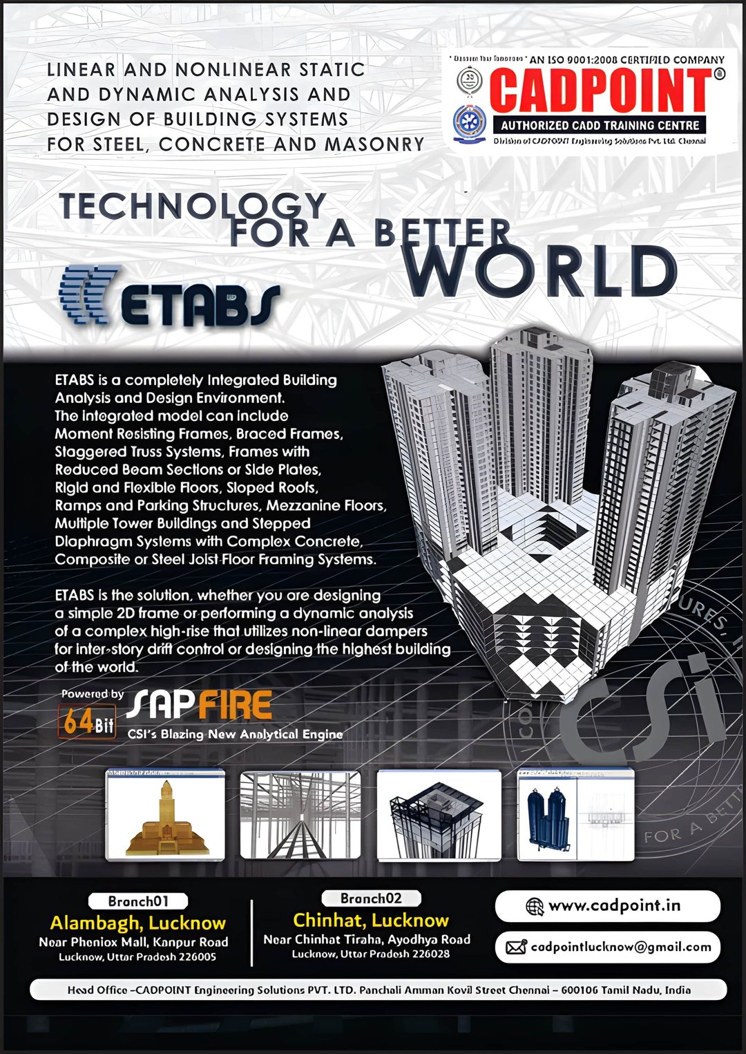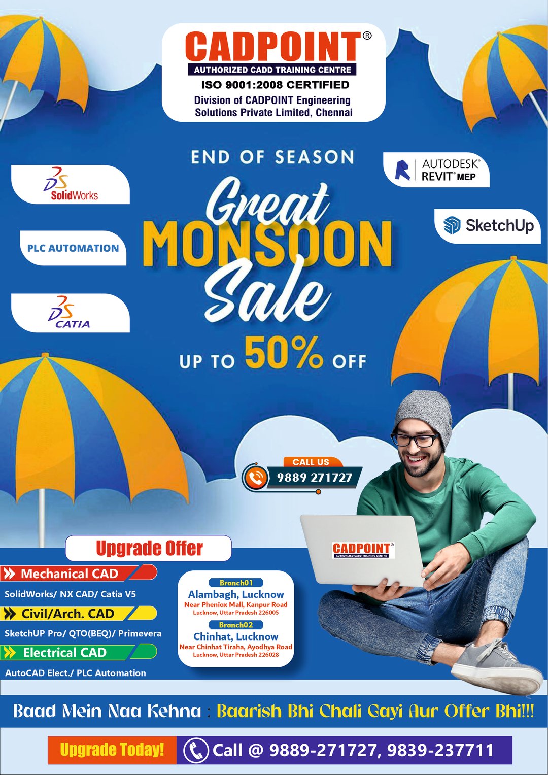 CADPOINT Engineering Solutions PVT. LTD. is a well established and affordable ITeS/CAD/CAM/CAE company in INDIA, providing services to Architects, Interior designer Civil engineer, & HVAC consultants for over 18 good years now. We incorporated and built on the foundation of ' Value delivery at all levels and during all interactions '. CADPOINT has been delivering value to its customers in all its business units, which incorporates experts in the fields of CAD, Animation, Graphic Design, Multimedia, creating cartoons and advertising animation. Courses offered- CAD Courses AutoCAD Revit Architecture/Structure/MEP BIM Staad _pro &ETABS Sketchup PRO SolidWorks Catia NX CAD/CAM Ansys AutoCAD Electrical PLC, SCADA & MATLAB Lumion V-RAY And Many
